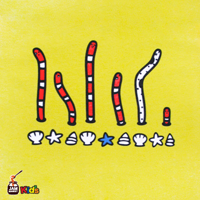 沖縄の珊瑚礁域に生息しているニシキアナゴ。砂穴から顔を出している様子に加え、貝殻や珊瑚たちも楽しい色合いを加えた可愛いデザイン!!