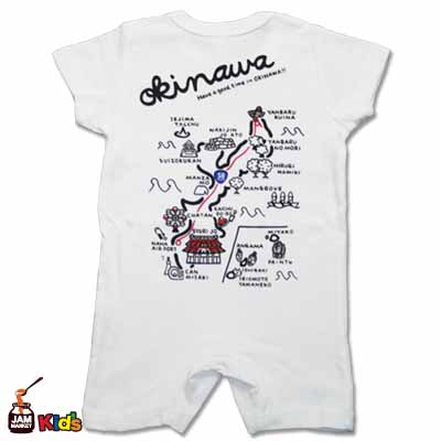 沖縄地図(子供用ロンパース:ホワイト)