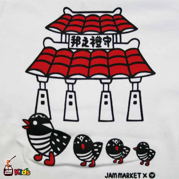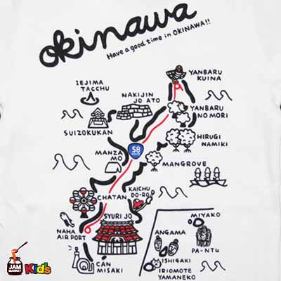 沖縄の観光地をデザインしたTシャツです。このTシャツを見てドライブするのもイイかも!前面には、とてもカワイイやんばるくいなの親子が守礼の門を観光しいるのがポイント!!家族でお揃いで着て沖縄観光するのをオススメです!