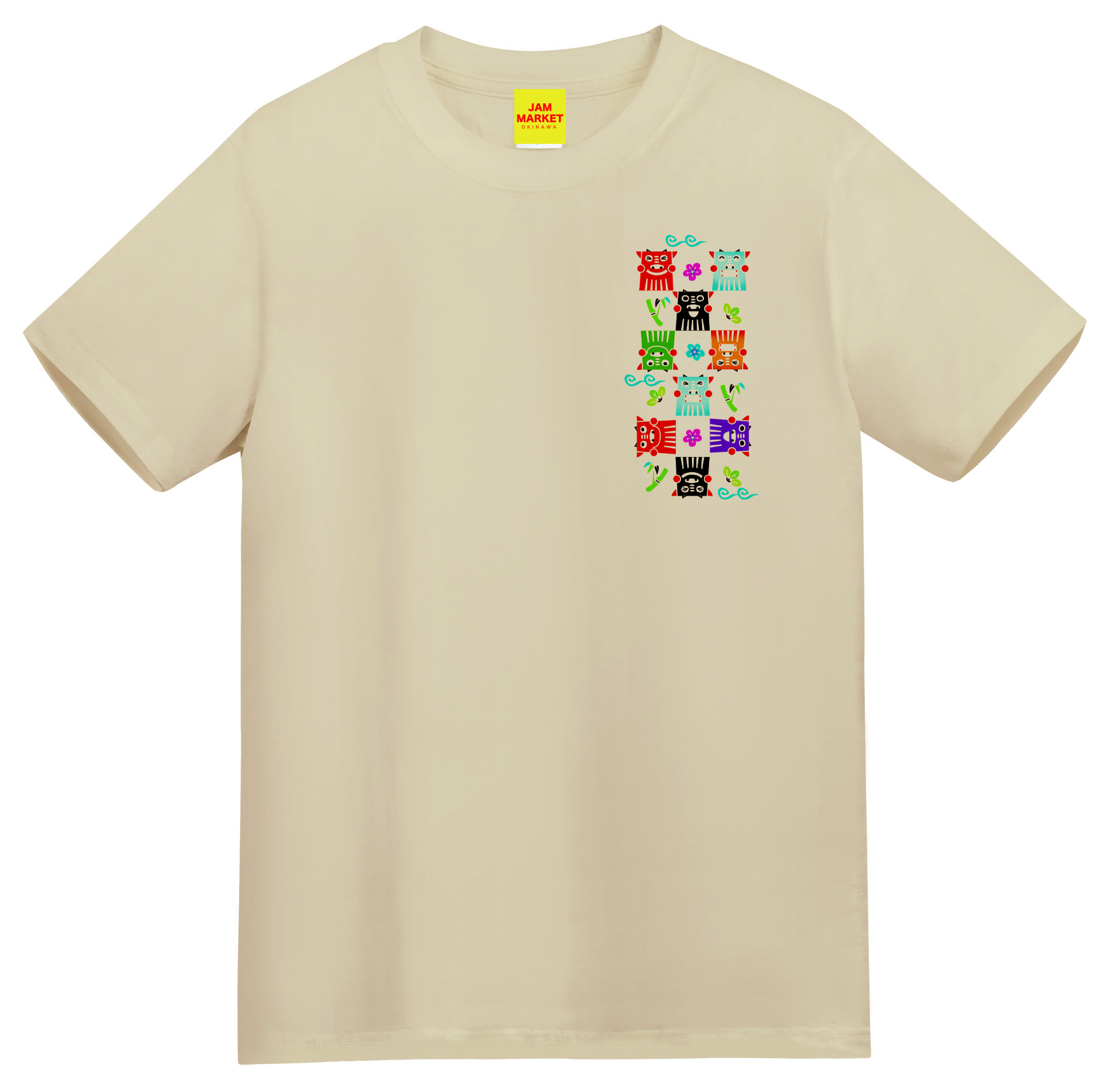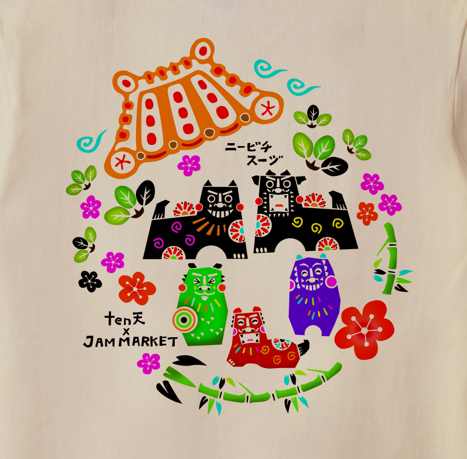 ニービチとは?沖縄の方言で結婚式を意味します。沖縄の結婚式は特徴としてユイマール(助け合い)の精神が定着しており、沢山の人達がお祝いに駆けつけてくれます。そんなめでたいニービチを表現してみました。色んな顔の可愛いシーサー達の祝福が伝わってきますね。Happy & Heartfulな可愛いTシャツです。