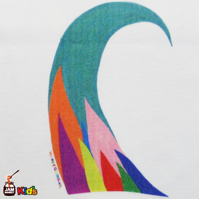 カラフルな色合いにインパクトのある可愛らしいシーサー !!!JAM MARKET×SYOUTA のコラボ作品が登場 !!!口を開けている男の子シーサーと、口を閉じている女の子シーサーの二種類があり、絵柄が繋がるLOVELYな1枚 !!!デザイン下部のトリコロールカラーのミンサー柄も繋がります。そして、なんとバックの尻尾のデザインも互いの立ち位置を変えるとハートのマークが !