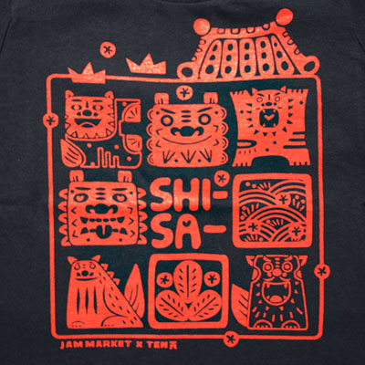 赤瓦の下にいろんな表情のシーサーがデザインされ、家を守っています。沖縄で活躍する紅型作家ten天さんとのコラボ商品です。