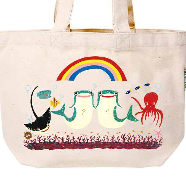 沖縄のキレイな海の中で賑やかな生き物たち。どこか竜宮城を想像させます。お弁当箱入れや、お散歩時のバッグとしても便利です。