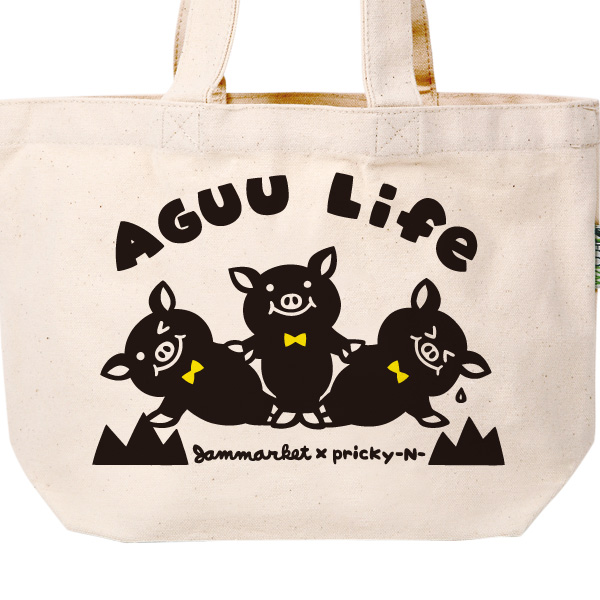 沖縄の黒ブタのアグーを可愛くデザインしました。蝶ネクタイがポイントです。小さいサイズのバッグでお散歩などに便利なサイズです。