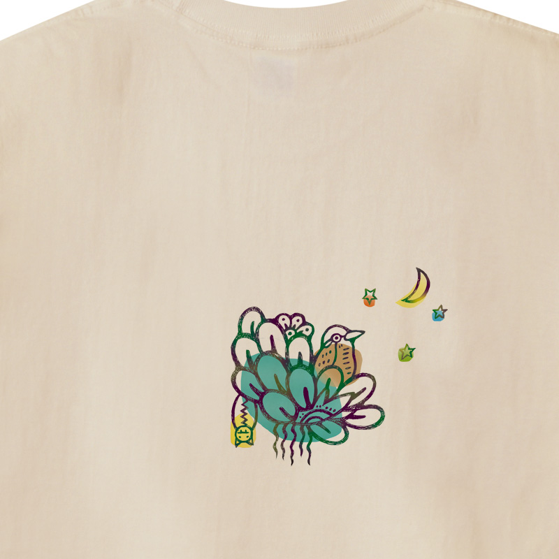 月の光を浴びたガジュマルの木に鳥が潜む。